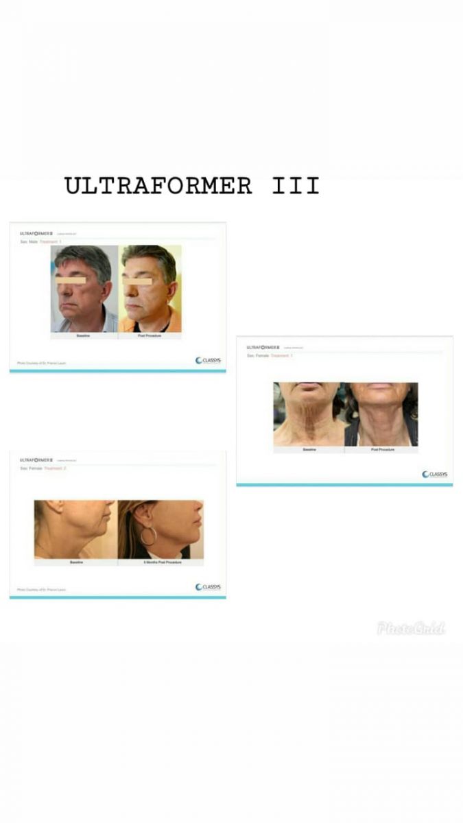 The ULTRAFORMER III is a completely non - invansive, face lifting and tightening, body tightening and contouring device that provides a customized treatment procedure for the entire face, neck, and body.
